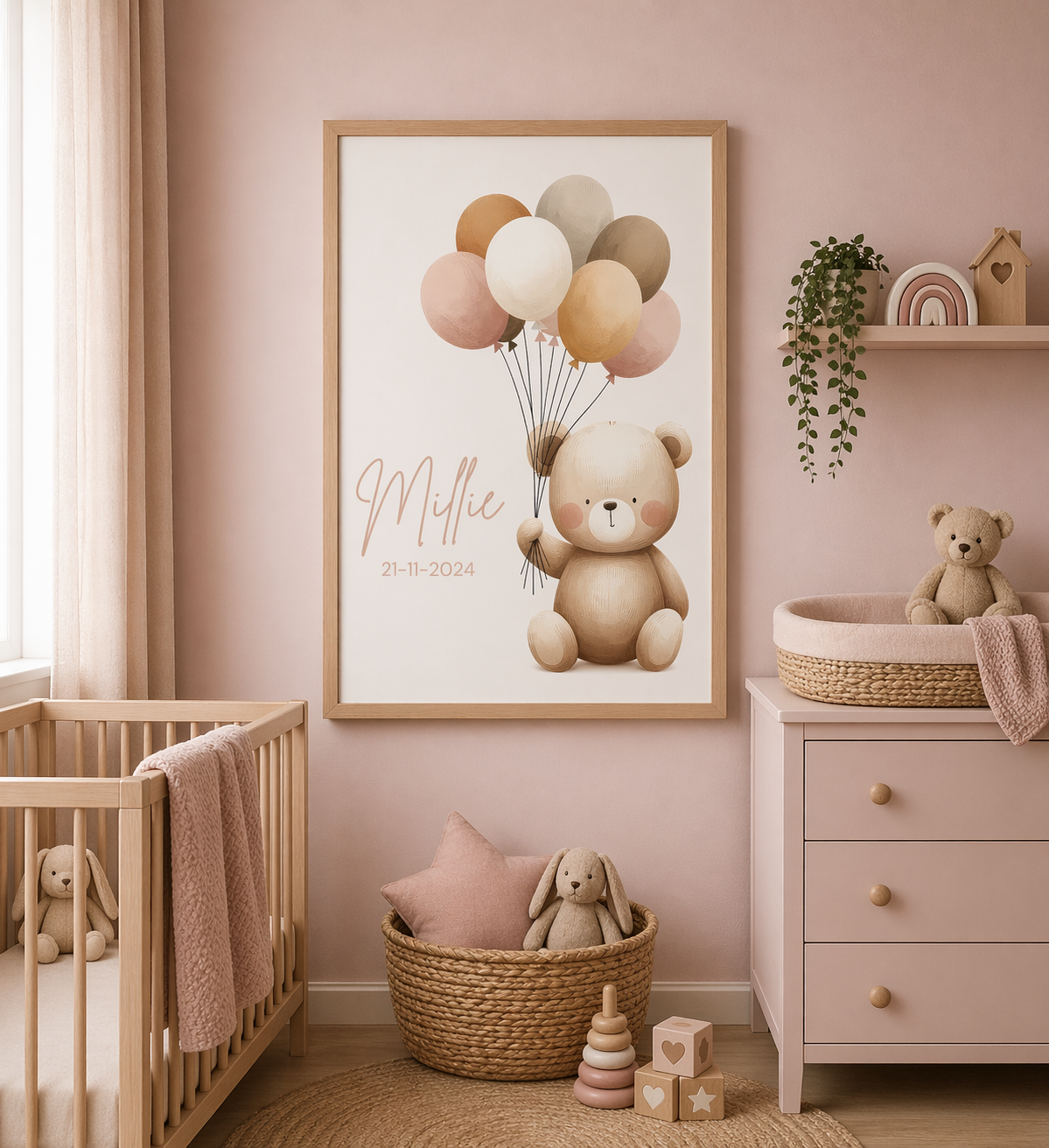 Deze lieve kinderkamerposter brengt meteen warmte en gezelligheid in de kamer van jouw kleintje. Perfect om boven het bedje, de commode of aan de muur van de speelhoek te hangen. Personaliseer met een naam en/of geboortedatum voor een uniek aandenken dat jarenlang meegaat.