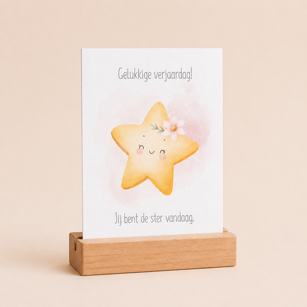 De kaart is A6-formaat (10x15cm) en is geprint op stevig papier met een matte afwerking.
