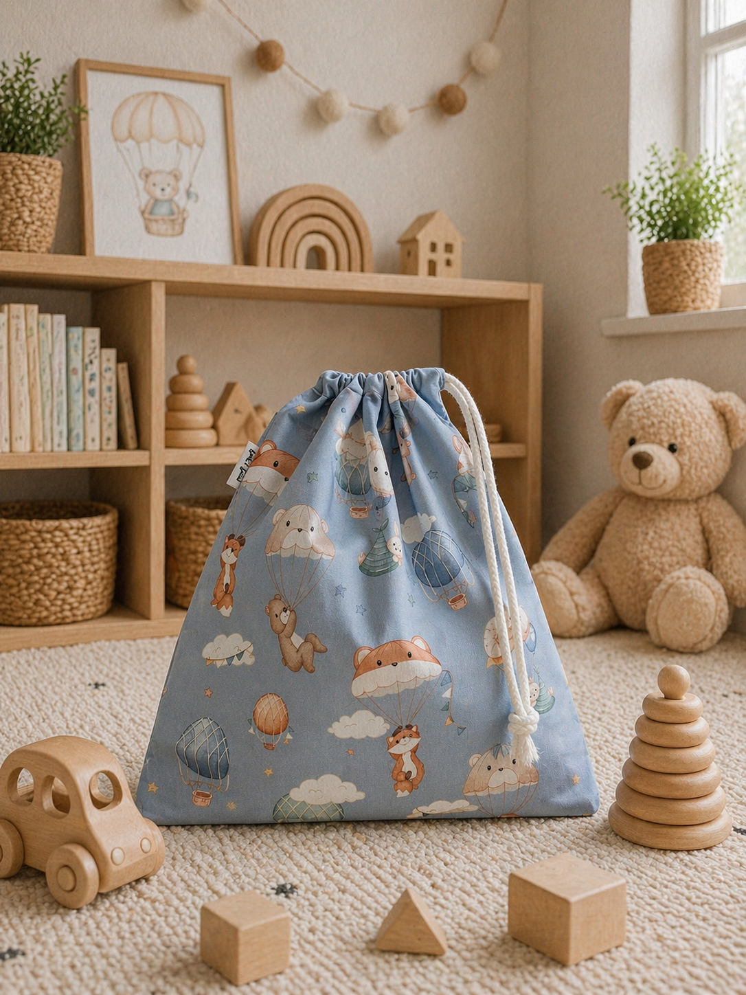 Gemaakt van 100% katoen en sluiten eenvoudig met een handig trekkoord. Ideaal voor thuis, op reis of om mee te nemen naar opa en oma.