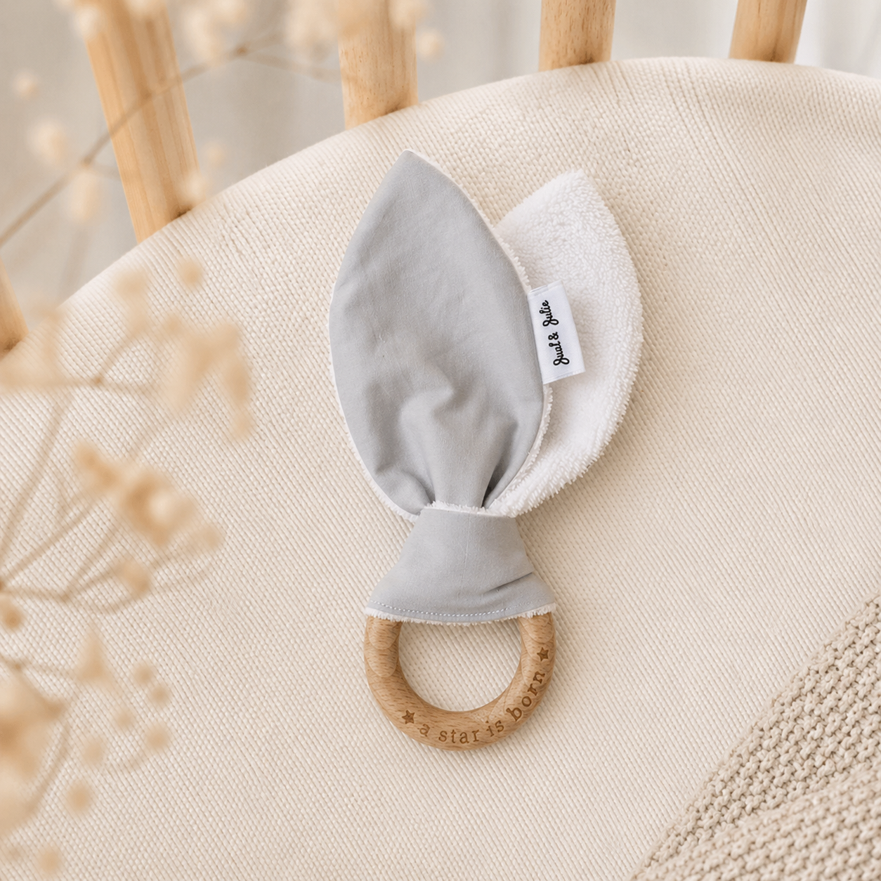 Onze houten bijtring stimuleert de baby te voelen, zien en horen. Het werkt ook verzachtend bij het doorkomen van de tandjes. Door te bijten op de beukenhouten ring verlicht het de jeuk en/of de pijn.