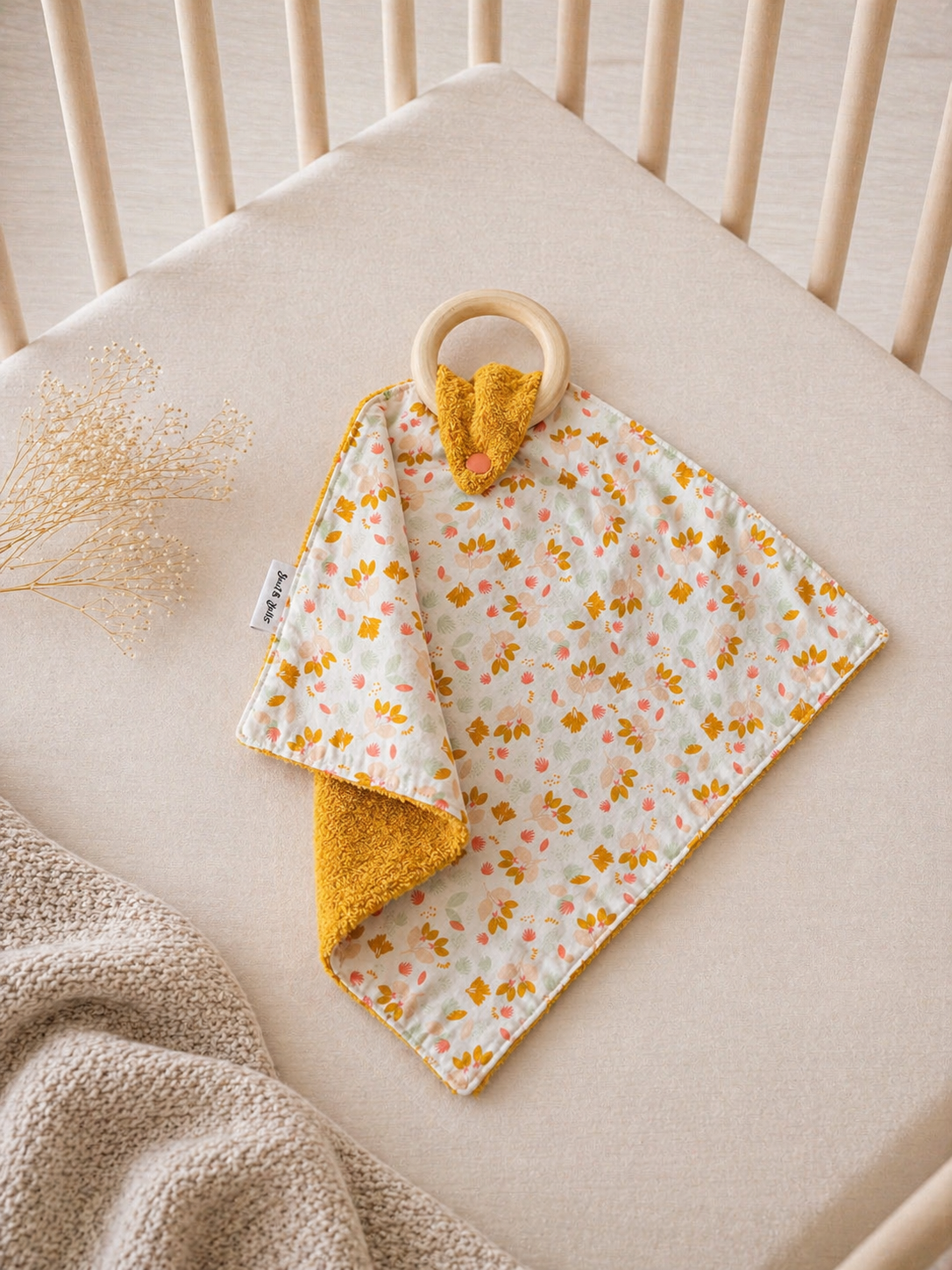 Geboorte | Knuffeldoekje | Bloempjes oker